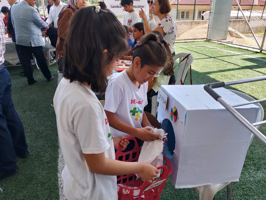 Okulumuz adına sınıf öğretmeni Merve BOZDUMAN rehberliğinde 3/G sınıfı öğrencileri Yaşam Becerileri İl Finali Gösterisine katıldı. Öğrencilerimiz çamaşır yıkama, asma, çamaşır toplama ve katlama etkinliğini uygulamalı olarak standımızı ziyaret edenlere anlatmışlardır.